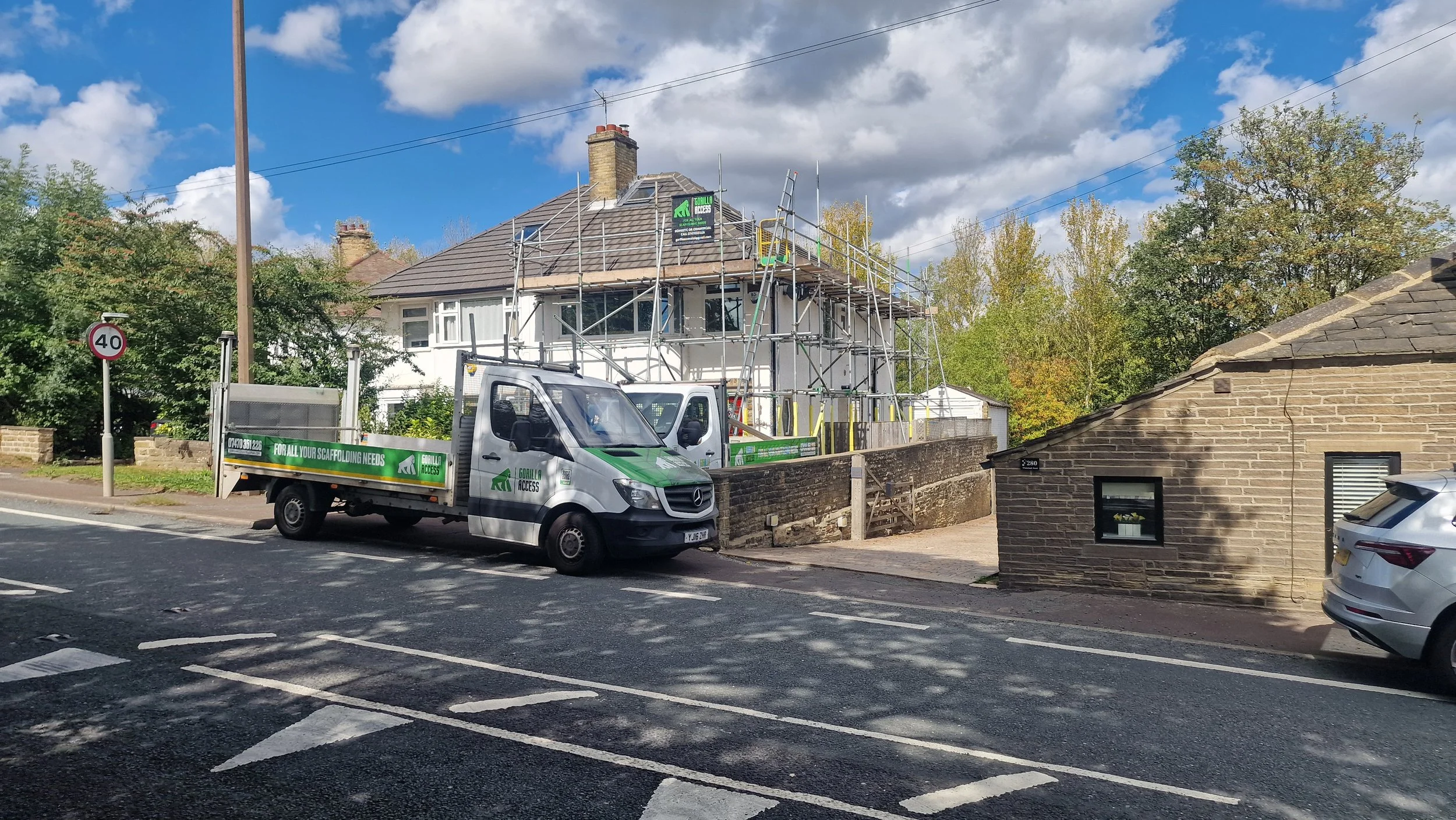 Whether you’re renovating a Georgian townhouse near Piece Hall or constructing a new unit on the outskirts of Halifax, Gorilla Access Ltd provides comprehensive scaffolding services. Our domestic and commercial packages include quick erection, robust loading bays and fully engineered special access solutions, all delivered by TG20‑compliant, fully insured scaffolders. We also offer temporary roofs to keep your project dry and safe and have expertise in scaffolding for renewable energy installations.